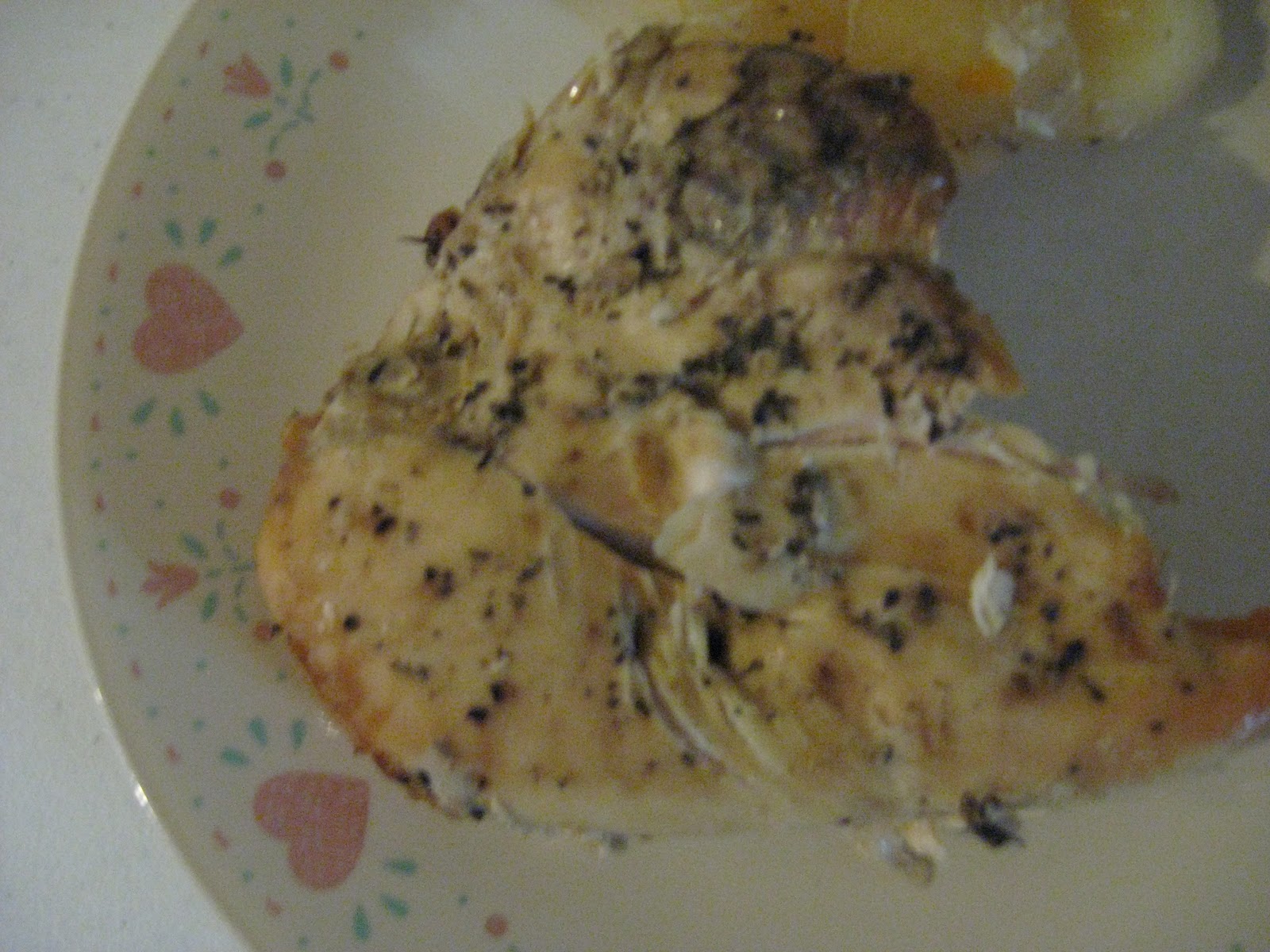 - Sprinkle thyme (I didn't have it so I used some "Italian seasonings" I had) on top of chicken.