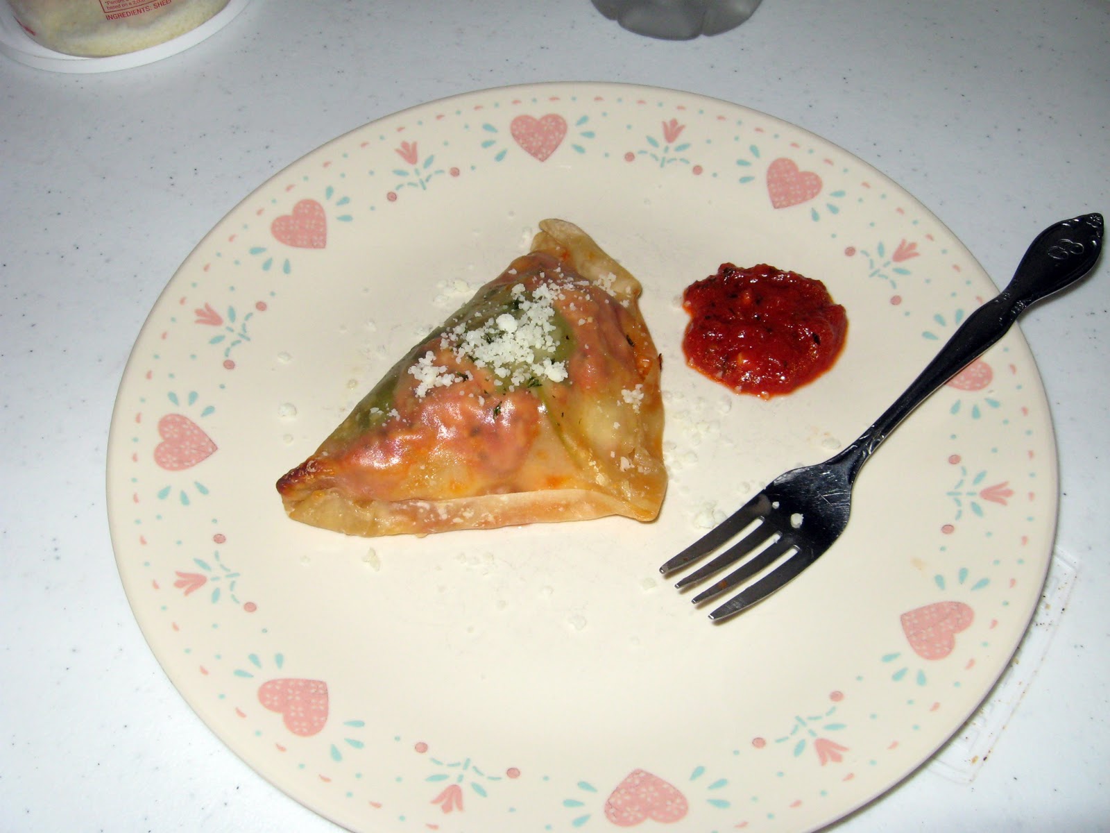 - Lightly brush 2 adjacent sides of a wrapper with water and fold the upper left corner over to the bottom right (cover the filling and seal the edges).
