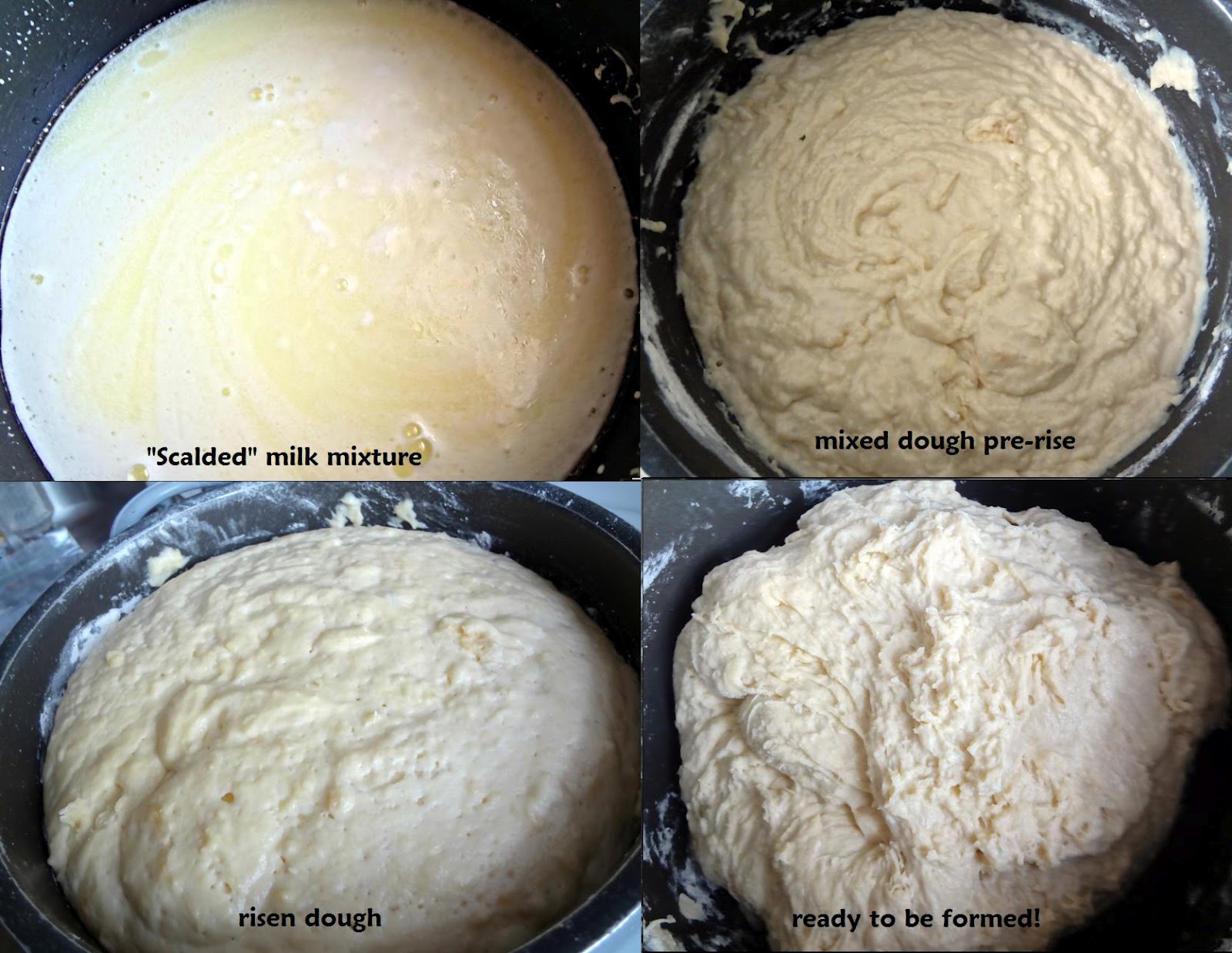 - Once cooled to warm, add 4 cups flour and the 2 packages of yeast to the milk mixture. Gently incorporate them, then add an additional 4 cups of flour.
