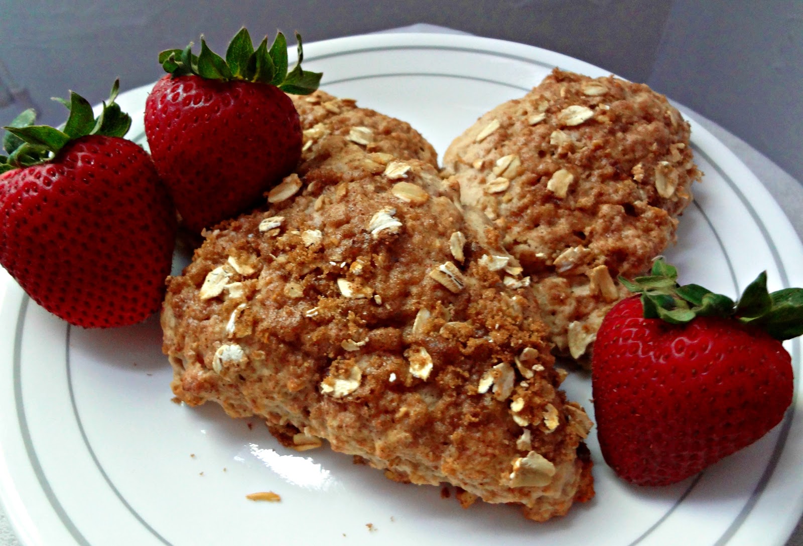 In my never-ending quest to make more new and delicious breakfast foods (because I have a hard time eating normal, quick, breakfasts for some reason), I decided it was time for scones to make an appearance. And these looked like such a yummy way to introduce myself to them! Brown sugar-yum. Cinnamon-yum. Oats-I'm a fan. Whole wheat-woo hoo! Admittedly, I had a smidgen of a hard time with these. The dough was so wet I wasn't really able to separate/move them to the baking sheets without causing most of the scones to become horribly misshapen. I'm unsure how to solve this issue/what I did wrong. Perhaps I should have put more flour in. However, since this was my first foray into scones, I thought perhaps they were supposed to be that way? But if they are...how in heaven's name can you get them to the baking sheet/separate them from each other after cutting? All my scone making friends-I'd love any feed-back!
