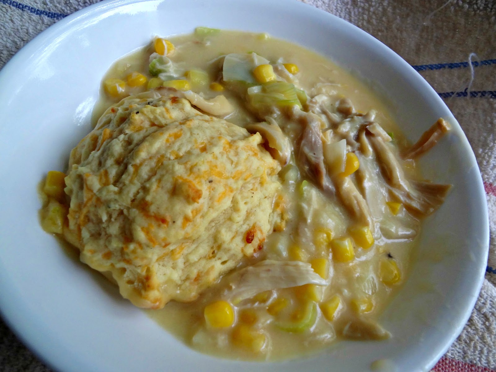 A few weeks back I mentioned I did a promo job at the Book Expo. In addition to seeing a few celebrities (Michael Bolton, Jane Seymour, Chris Colfer...), there were a lot of different booths with a lot of different stuff. But, you know the things that got me really excited? ALL THE COOKBOOKS! I was so excited when I went to the America's Test Kitchen booth and-in addition to some little pamphlets-I got an advanced, un-edited copy of The America's Test Kitchen Quick Family Cookbook! It is chock full of quick, simple, and delicious recipes! The only thing I'm not in love with, from the book, is all the shortcuts. I'd much rather make things from scratch. So, I adapted this recipe a bit (i.e. making biscuits from normal ingredients, not Bisquick). I can't wait to try out a bunch more stuff from my wonderful, free, cookbook :D