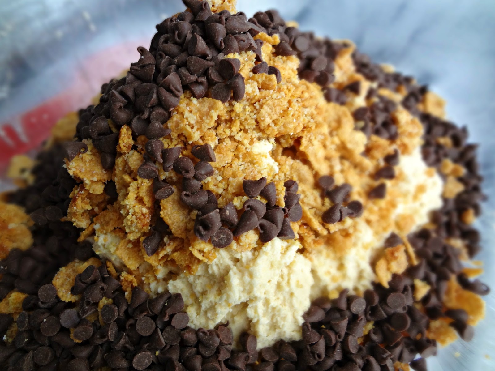 - Scrape down sides and, still on low speed, paddle in the cornflake crunch and chocolate chips until just incorporated (30-45 seconds), then stir in the marshmallows as well.