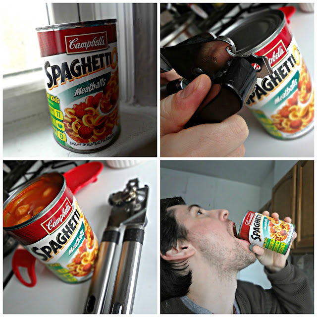 -That's right! No dirtying a bowl or spoon. No waiting for it to heat up in the microwave. Open that bad boy up and chug down delicious cold SpaghettiOs.