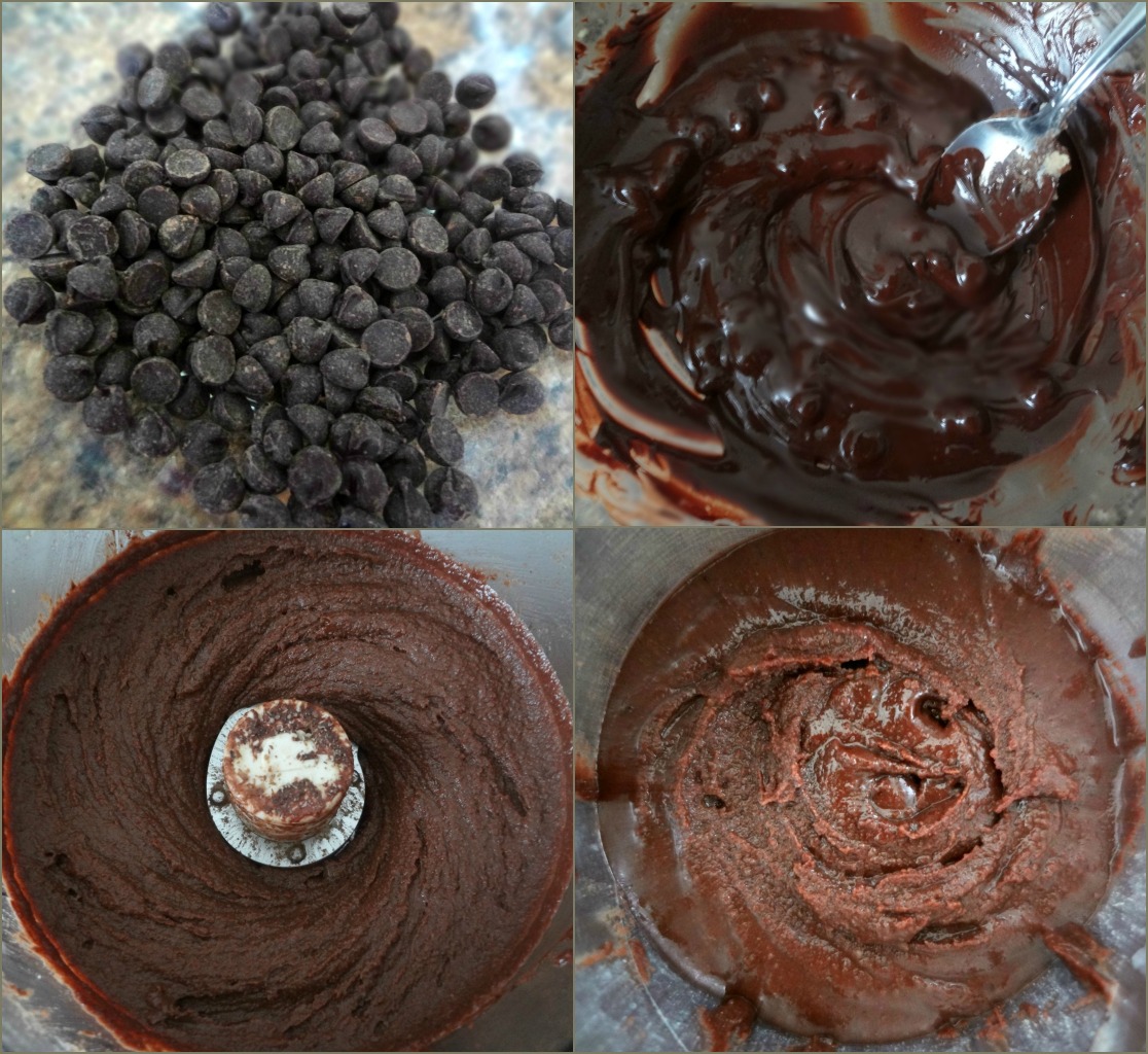 - Sometime after the walnuts have formed the ball, take some melted dark chocolate and add in a little at a time, tasting until you are happy with the flavor. You can also add some salt and/or sugar. (I used a little salt, but no sugar). Process until the chocolate walnut butter is at your desired consistency and taste.