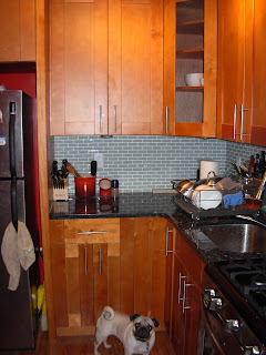 Q: Show us a picture of your kitchen! (Lookat the cutie pug!)