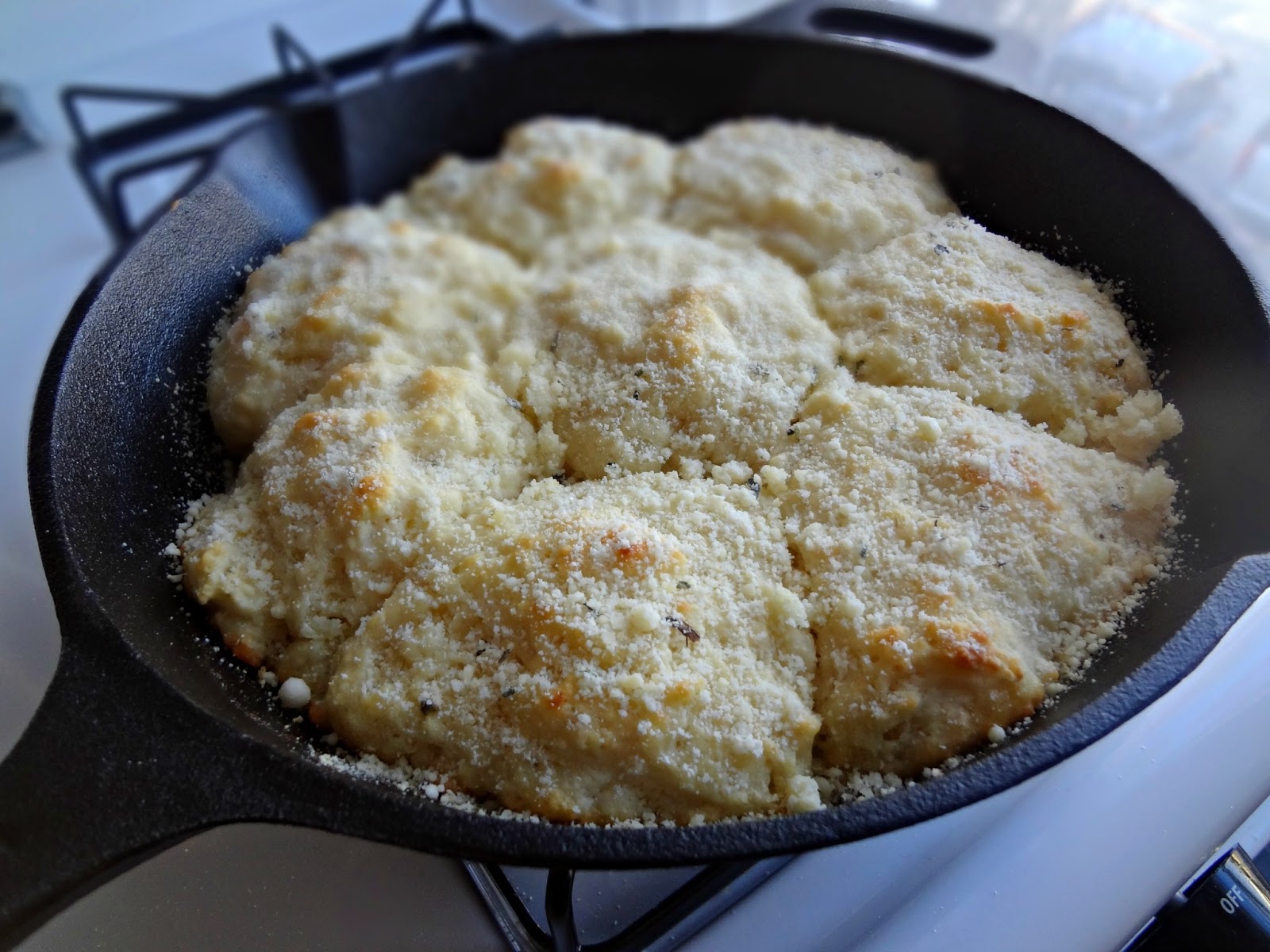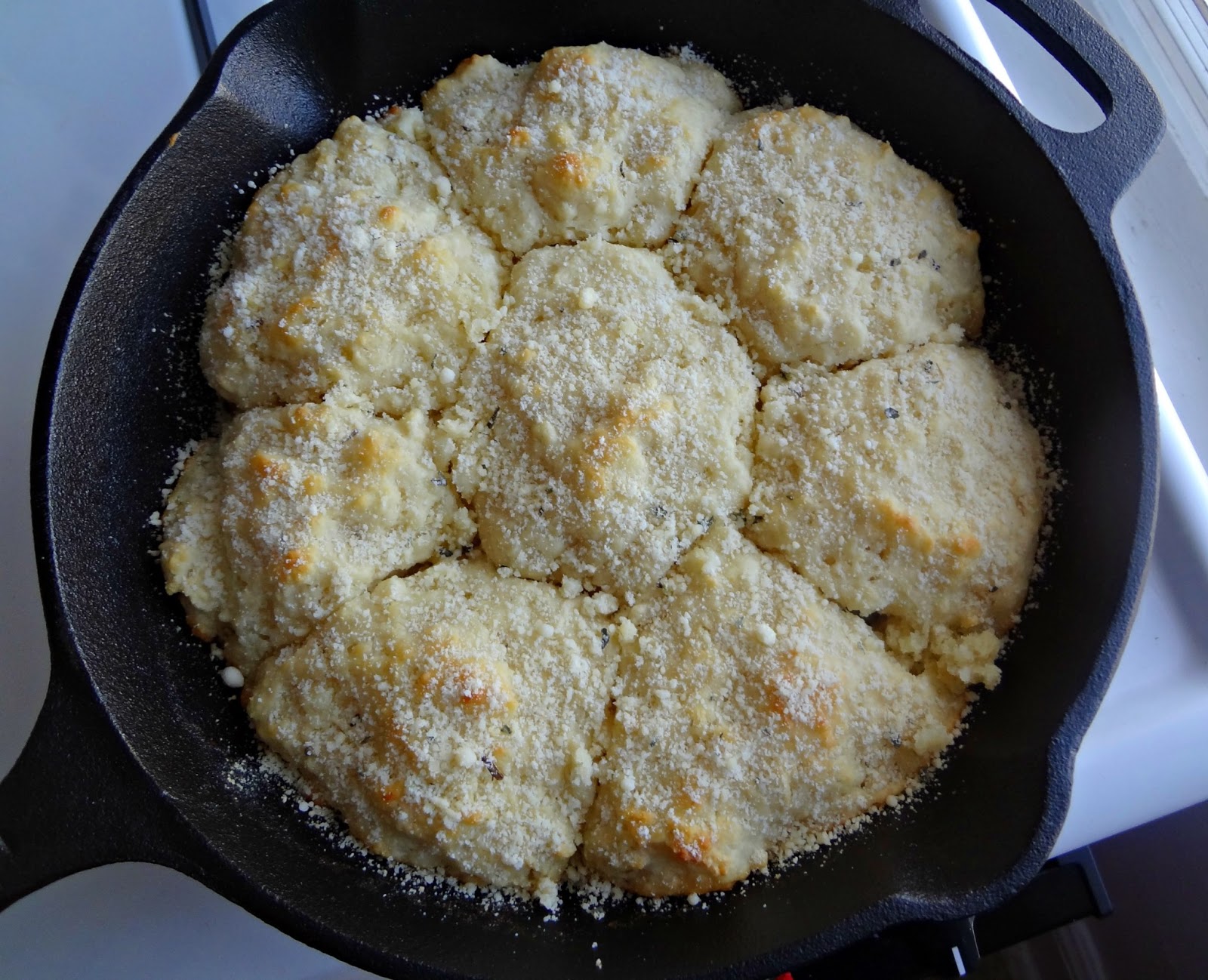 - Sprinkle cheese and (if desired) garlic and herbs on top of the baked biscuits. Let cool then eat!
