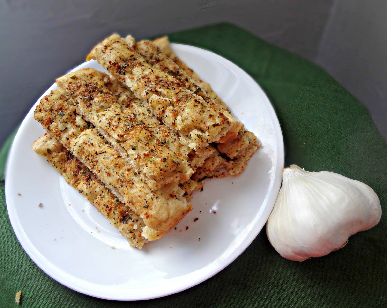 Now, truth time: I prefer the herbed oatmeal bread that I've made before to these, it has similiar flavors but is way easier to make and has a much better texture.BUT, if breadsticks are what your heart is set on, definitely go for these! I made a few mistakes whilst making them, but I've changed up some of the instructions to help keep you from doing the same (I foolishly followed the directions to cover the dough with plastic wrap...and then it got stuck...*sigh*). They're actually not too bad for you (no butter, just some olive oil) and they are super flavorful and addictive!