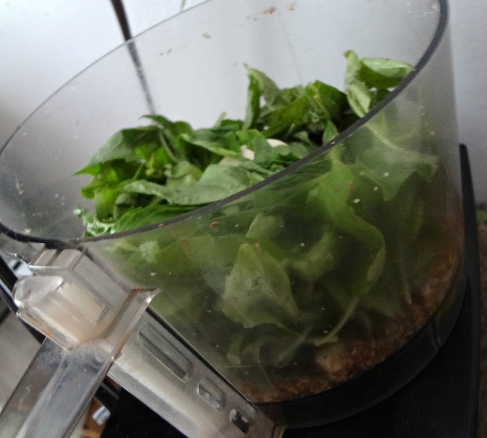 - In a food processor, combine the basil, garlic, and nuts. Pulse a few times.