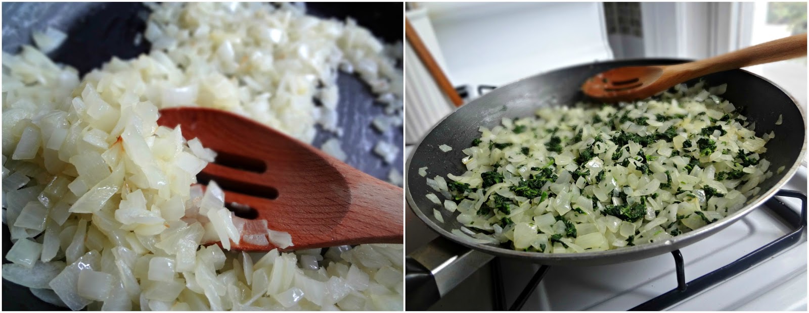 - Heat oil over medium low heat in a large pan. Add onions and saute until very soft and translucent (but not yet caramelized--unless you want to caramelize them, then go to town), stirring frequently-for about 30 minutes. If onions get dry towards the end of cooking, add water.