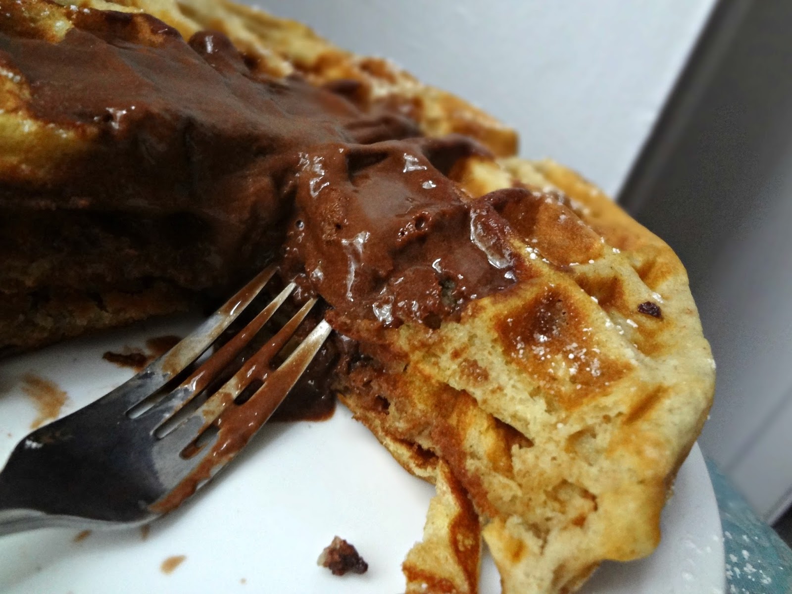 for quite some time now. And, thanks to the AMAZINGESS of one of my newer bloggy buds Zainab (AKA Blahnik Baker) I now am in possession of my very own copy! EEE! One of the very first things I made from my beautiful new cookbook was these cookie dough waffles. But um...even though they are clearly not a healthy brekky, I still attempted to make them a little less inappropriate for morning times. Essentially I used some whole wheat flour and subbed in STAR'S new Butter Flavored Olive Oil (more on that in Friday's post) in for the butter in the waffles. Super easy swaps and I still ended up with amazing waffles that were chewy and deliciouuus!