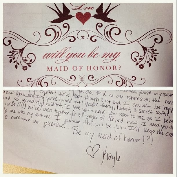 Being engaged is still fun. Per all of your advice (and talking to my mom and fiance' :P) I've decided I have enough time and organization/control freak skills to not need a wedding planner. Woot! I've also officially asked all my bridesmaids to be...well...bridesmaids...and they all said yes! yay! I asked them using {free} printable cards from these sites: Wedding Chicks and Love vs. Design, and here's the photo my maid of honor, Alex, instagrammed after she got hers: