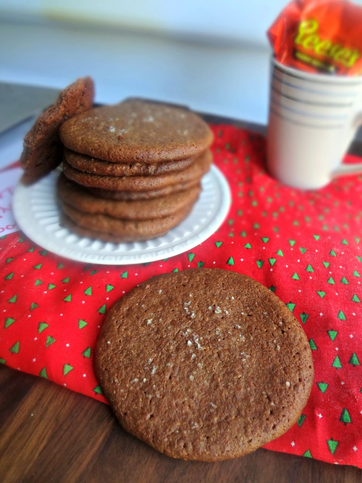 These cookies are big, crisp, sturdy (important when you're traveling with cookies and/or giving/sending them as gifts), full of delicious peanut butter/chocolate flavor, chewy, and just mmmmm