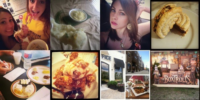 Tuesday I had my first-paid-modeling gig in Ohio-I did a photo shoot for Jay Kossman photography and it was tons of fun! I can't wait to see the shots and show you guys :) PLUS we shot in Chagrin Falls, which is where we took my engagement photos so I had some major deja vu. Plus it meant I got to get myself a treat from Jeni's ice cream again :D This time I tried their chocolate hazelnut ice cream sandwich and ooooh it was SO DANGED GOOD! Amazingly rich and dense chocolate ice cream sandwiched between chewy and nutty hazelnut cookies and then rolled around the edges in chopped hazelnuts (pictured in the instacollage below). Om nom nom!