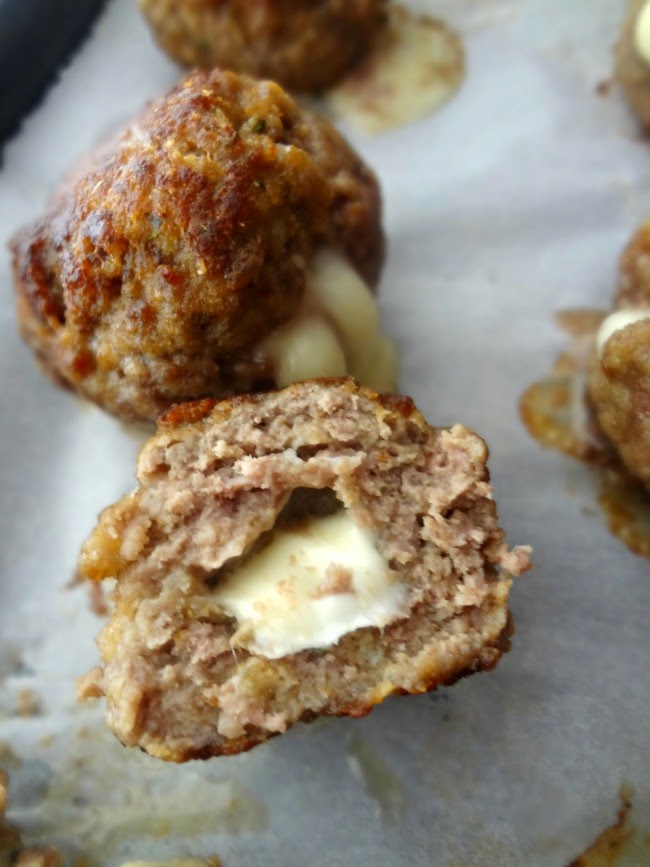 If you want to get crazy authentic you can attempt to stuff legit. mozzarella in these meatballs. I'm not sure what will happen, though. I can only attest to what goes down when you use string cheese, but far be it from me to curb your creativity!