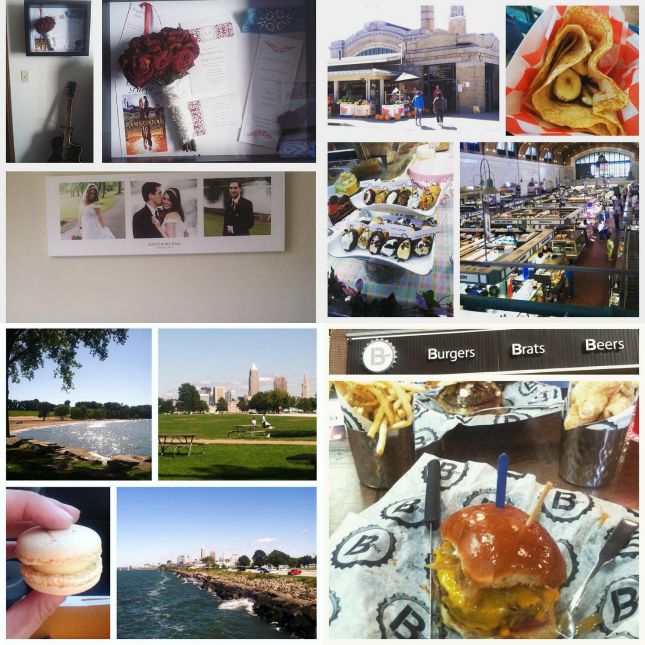 Monday-Carla (AKA Chocolate Moosey) came to visit me and we spent the day eating our way through Cleveland. We started out by spending some time in the adorable town of Chagrin Falls so we could get some Jeni's ice cream. Which is the best ice cream everrr. Their special of the day was Honey Milk Chocolate with Smoked Almonds and we each got 1 scoop of that. Carla also got a scoop of Salty Peanut Butter with Chocolate Flecks on a cone and I got a scoop of Salty Caramel in a cup with a wedge of waffle cone. Then we headed into Cleveland to the food mecca that is the West Side Market-ohemgeeee! We were so overwhelmed and I know I def. am going to need a return trip! Carla got a latte from City Roast and a gyro from Steve's Gyros (the line was insane! She said it was really good!) We also shared a banana and nutella crepe from Crepes de Luxe (it was pretty good). And we each got a flavored cannoli from Cake Royale (I got hazelnut and Carla got caramel cappuccino)-they were really unique and quite tasty! Oh, I also got a mini creme brulee macaron from Cake Royale-it tasted sort of like a pizzelle (so...anise?) which was weird but it was good. Then, to re-work up appetites and burn some calories, we drove up to Edgewater Beach/Park and walked around. It was sooo pretty. And then we headed down to Strongsville to try out B Spot (Michael Symon's burger joint!) I got a classic cheeseburger but with griddled onions and Carla got a burger that had mushrooms, grilled onions, and blue cheese. We also got a side of rosemary fries and "pork cracklings" (essentially pork rinds)--it was happy hour so those were each only $1! :) Everything was suuuuper tasty and if you like pickles then it's pretty cool because they have a pickle bar. They also have their beers listed in a way that means Michael could prob. actual order for himself because they're divided into categories (light, medium, dark, essentially). And that was our day-it was so fun and I'm so happy that Carla came in to spend the day with me! (and if you were wondering, Jeni's was def. the highlight!) --scroll down to highlights from instagram for some photos from the day!