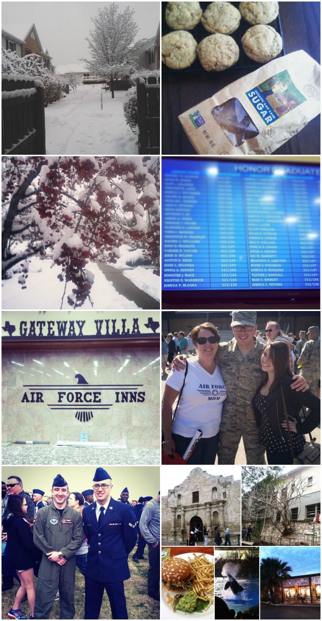 Let's talk about my trip to San Antonio for my brother's airforce graduation! Thursday we caught our first glimpse of him during the "Airman's Run" (although mom wasn't able to see him but I did!) and then there was an Honor Graduate Ceremony (the top 10% of their class get to be honor grads, and Josh was one! He actually finished #2 in the entire class!) and then a Coin Ceremony (they get coins which are like a thing...anyway) and theeen we got to go hug him! And we hung out with him around the base the rest of the day, and it was awesome. Friday morning Josh's best friend (and our across-the-street neighbor most of our lives) Bryan came and we watched the official graduation ceremony--which mostly just involved them marching and stuff. Then we got to go hug him again (yay :D) and then their dorms had an open house so we got to see where he slept and his locker and we met his MTI's (training instructors). --it was also pretty hilarious because Bryan is an officer (he's almost done training to be a fighter pilot) and Josh's fave MTI called the entire dorm to attention to pay respect to him and he was so embarrassed and then she said, "You look a bit red there, Sir." and it was sooo funny. Anyway, then Bryan had to go back to his base and we were going to meet him there after we grabbed lunch.