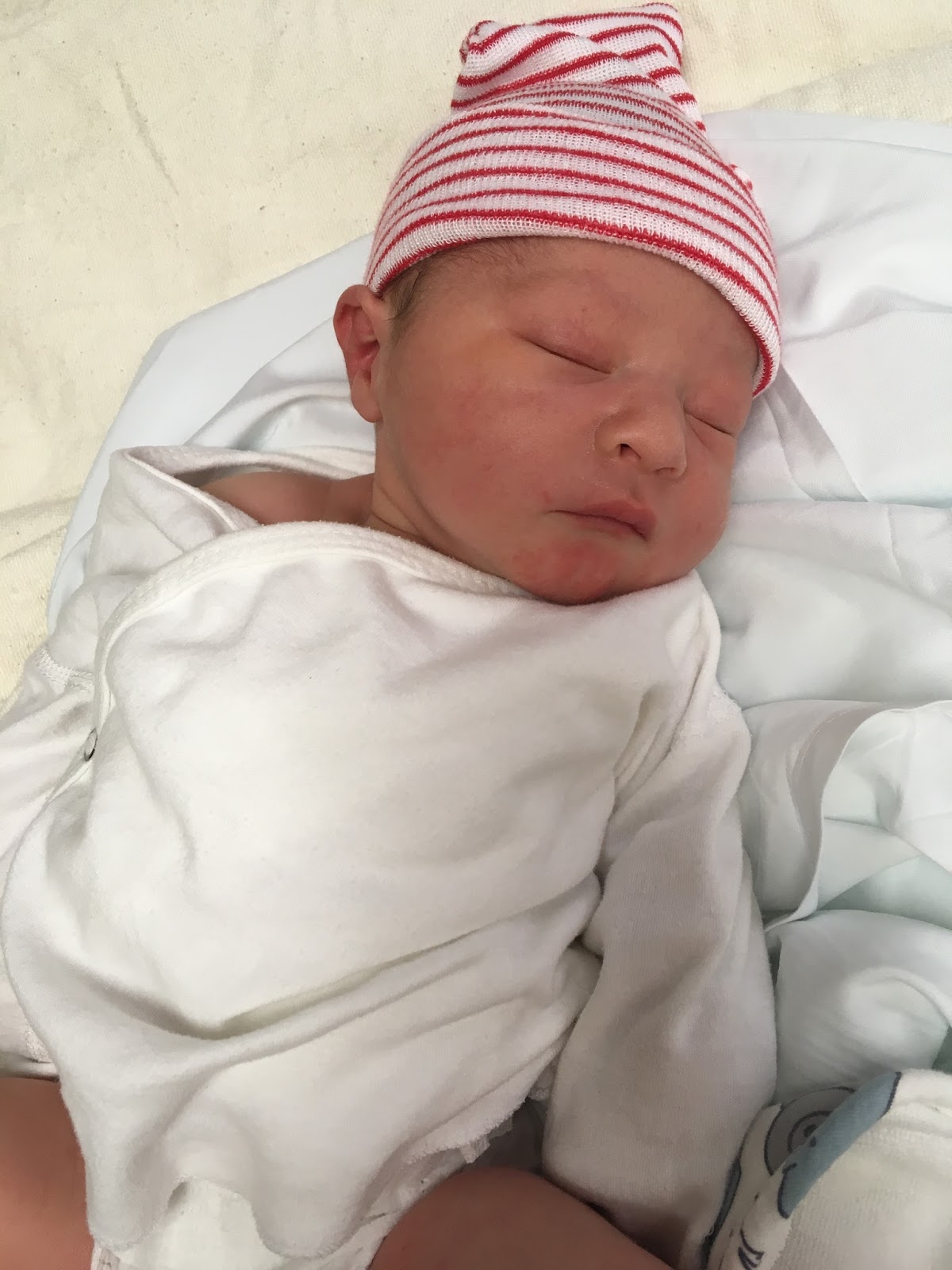 The whole thing technically started Wednesday (December 6)-I started feeling some weird wet leaky situations and had a particularly large one mid-morning. I was planning on just asking my doctor about it (I had an appointment for that afternoon) but then I started to worry that my amniotic sac was leaking, so I called my doctor's office and asked and they suggested I go to the maternity ward at my hospital, just in case (fun detail: I found out then that they had the wrong hospital in my file so it's a good thing I called so they could send over my information to my correct hospital). Michael was, of course, conducting a training over an hour away that day (which is not a normal occurrence) so I asked my mom to take me. I got all my bags ready, took a shower, etc. --just in case. I had no real expectations of what was going to happen because I wasn't feeling any contractions so I felt like I could be kept or sent home, I really wasn't sure either way. My mom, however, was convinced they'd be keeping me (she had an amniotic leak with my brother). I started to get concerned that if my water was leaking they'd end up needing to induce me which could lead to a C-section...etc. This sort of worrying was a very consistent point of stress from my entire labor. Anyway, we got to the hospital (and I was also super sad that I was doing all of this without Michael, who was getting ready to come to the hospital as soon as he could get away and get there) and they put me in to check on me. Long story short--no amniotic fluid so that wasn't it (still not 100% sure what the leaking was but, as you'll read later, my bladder had some weird stuff going on during labor so my guess is it was related. Which is gross, I know.) However, I was apparently having some contractions (I couldn't feel them but they were on the monitor) and I was dilated to 1.5 cm, 80% effaced, and he was in a -1 position. All of that to say....it was going to be soon. They said probably within the week. So I called Michael and told him to just meet me at home and that was that.