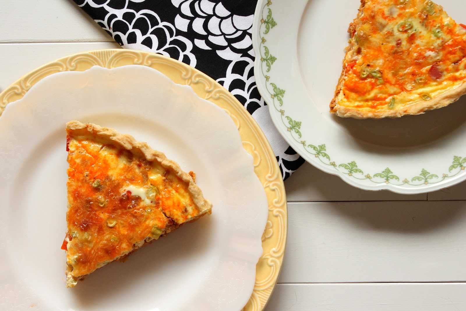For this quiche, I went with some fun Mexican flavors with some chorizo (or, for a vegetarian-friendly version, you could use your favorite soyrizo – I personally like the Trader Joe’s brand), onion, red pepper, and a blend of Mexican cheeses. The chorizo pairs well with the eggs in the quiche base and gives the whole thing a nice hint of spice without being too overpowering. This fun twist on a traditional quiche would be a great addition to a brunch, or perfect for a light lunch with friends. And make sure to save the leftovers for the next day…it’s just as good straight from the fridge while you’re still wearing your pajamas. Not that I’d know or anything.