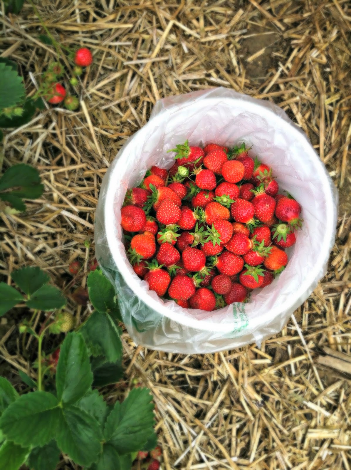 Before I knew it my bucket was filling up with lush, juicy, red strawberries!